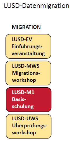 Den Einstieg in die Berliner LUSD möchten wir Ihnen so angenehm wie möglich gestalten. Die Schulung LUSD-M1-Basiswissen vermittelt Ihnen das Basiswissen zur Berliner LUSD und ist fester Bestandteil des Migrationsprozesses. Nach der erfolgreichen Absolvierung des Migrationsprozesses steht ein breit gefächertes Schulungsangebot (LUSD-M2-Aufbauwissen, LUSD-M3-Spezialwissen) bereit (vgl. Abbildung LUSD-Datenmigration und LUSD-Schulungsmanagement).